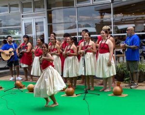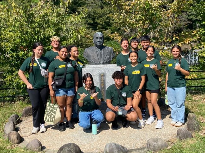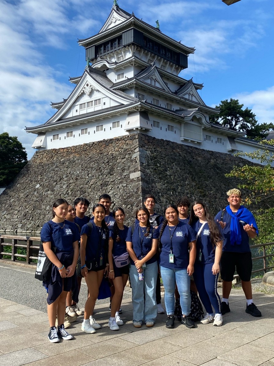 2025年10月、ケ・クラ・カイアプニ・オ・アヌエヌエ(アヌエヌエ学園)は第二回目の日本研修旅行を行いました。アヌエヌエは2023年度の研修の後、8年生と10年生生徒たちによる音楽団を設立し、公演の練習を重ねてきました。今回、10月5日ベイサイドプレイス博多開催のハワイアンフェスティバルin福岡2025に、この音楽団が出場しました。生徒たちにとって今回の研修のメインイベントとも言えましょう。